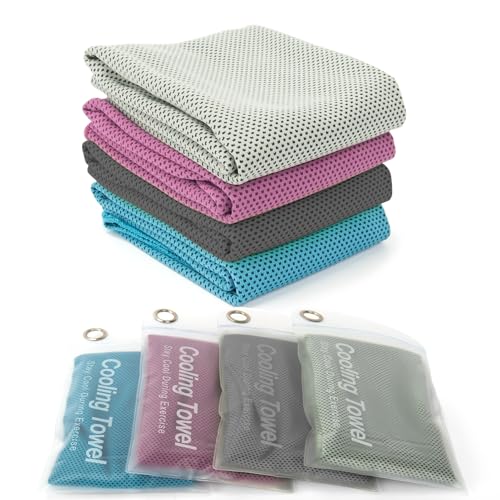 LONGKING 4 Pack Cooling Towel 40″x12″, Gym Towels for Men and Women, Soft Breathable Workout Towels for Yoga, Running, Sport, & More (Blue, Grey, Purple, Black)